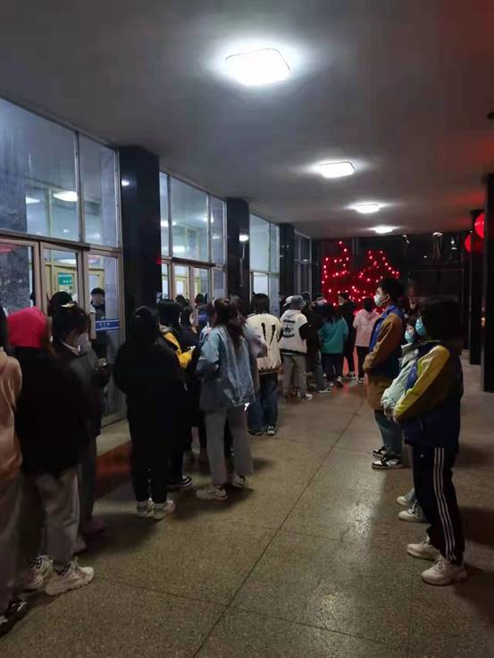 下午两点,团员青年志愿者们迅速与现场医护人员对接,熟悉场地和工作范围。在经过简短培训之后,立刻进入工作模式,各负其责。其中一部分团员青年志愿者负责场内核酸检测的引导工作,另一部分团员青年志愿者引导学生佩戴好口罩,在场外配合安保人员的秩序维持工作。团员青年志愿者们一边协助维持队伍秩序,提醒大家佩戴好口罩,一边细心检查学生的核酸检测预约码,帮助学生顺利完成核酸检测。志愿者们全员全程的无私奉献,为料峭春寒增添了温暖。 晚上八点,迎泽校区核酸检测志愿工作圆满结束,团员青年志愿者以热情的态度和细致周到的服务获得了医务人员、全体师生的一致好评。
