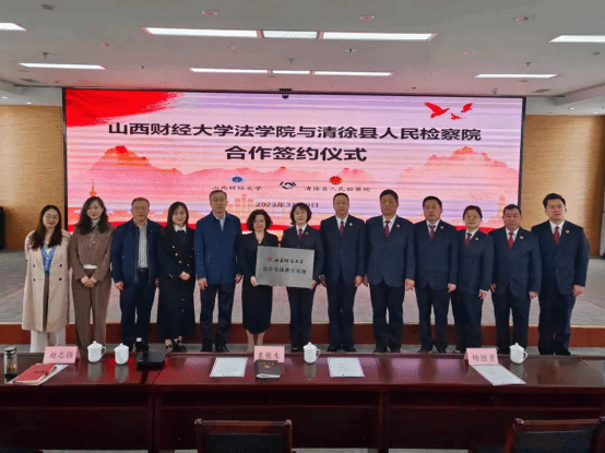 3月30日上午,古装三级 与清徐县人民检察院举行校检合作签约暨“法学实践教学基地”揭牌活动。古装三级 党委书记李军山,古装三级 院长樊云慧等一行六人,赴清徐县人民检察院出席签约仪式,会议由清徐县人民检察院党组书记、检察长孙寅平主持,清徐县人民检察院党组成员、全体干警参加。