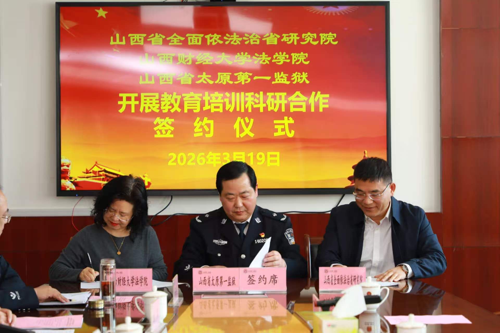 为深入贯彻党的二十届四中全会精神,践行习近平法治思想,推动法学理论与监狱实践深度融合,3月19日,古装三级 、山西省全面依法治省研究院、山西省太原第一监狱举行教育培训科研合作签约仪式暨座谈会。